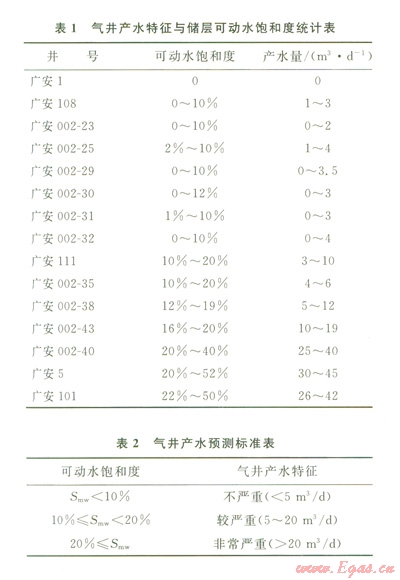 3)可動(dòng)水飽和度小于l0%的氣井,產(chǎn)水量小于5 m3a,產(chǎn)水不嚴(yán)重;可動(dòng)水飽和度為l0%~20%的氣井,產(chǎn)水量為520 m3a,產(chǎn)水較為嚴(yán)重;可動(dòng)水飽和度高于20%的氣井,產(chǎn)水量超過20 m3d,產(chǎn)水非常嚴(yán)重。
