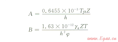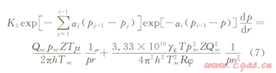 P0為原始地層壓力,MPa;p為目前地層壓力,MPa;K0為原始滲透率,mD;K為目前滲透率,mD;a為滲透率模量,Mpa-1;r為平面徑向距離,m;m為黏度,mPa·s;u為氣體在地層中的滲流速度,m/s;b為湍流系數(shù),m-1;r為地層氣體密度,kg/m3;Qsc為地面標(biāo)準(zhǔn)狀態(tài)下的產(chǎn)量,m3/d;psc為標(biāo)準(zhǔn)大氣壓,Mpa;Z為氣體偏差,無(wú)因次;T為地層溫度,K;h為儲(chǔ)層百度,m;Tsc為標(biāo)準(zhǔn)狀態(tài)下溫度,K;gg為地層氣體的相對(duì)密度,無(wú)因次;R為通用氣體常數(shù),Mpa·m3/(kmol·K);j為孔隙度,無(wú)因次。