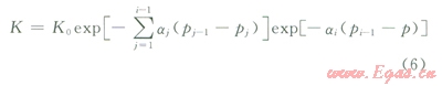在Pi≤P≤i-1內(nèi)(其對(duì)應(yīng)的徑向距離ri≤r≤ri-1),儲(chǔ)層滲透率可以表示為: