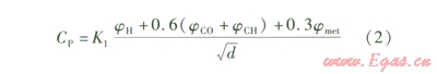 燃燒勢Cp,是反映燃?xì)馊紵齼?nèi)焰高度的指標(biāo),計(jì)算公式為: