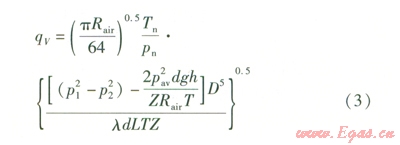 式中qv一—標(biāo)準(zhǔn)狀態(tài)下(壓力為101325Pa,溫度為288K)管道內(nèi)的流量,m3/s