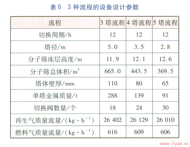 ② 脫水脫硫醇可以在同一分子篩塔內(nèi)完成。應(yīng)對多塔工藝流程的分子篩塔數(shù)量進行經(jīng)濟性比較,選用較合理的方案。