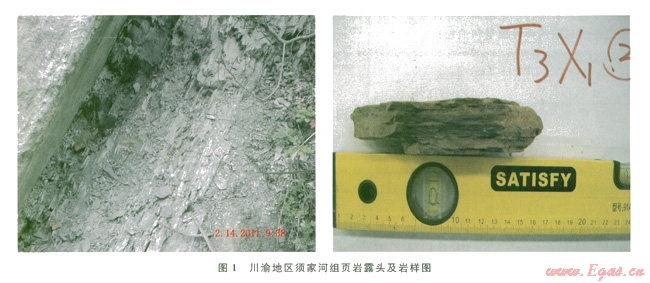 為了認清頁巖儲層地質(zhì)特征以及潛存損害因素,采集了川渝地區(qū)上三疊統(tǒng)須家河組頁巖露頭(圖1),對頁巖儲集窄間特征、礦物組成、流體賦存方式、溫度壓力特征等進行研究。