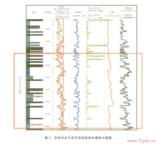 實(shí)例井的含氣泥頁(yè)巖層段從3