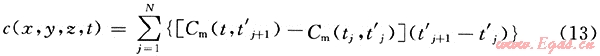 令t1=0,tN=t’,當(dāng)時間較短時,取N=1000足可以滿足工程計算精度需求。則對任意時刻任意點處的濃度計算式為: