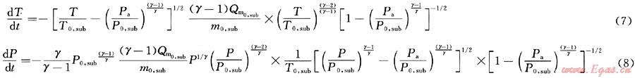 據(jù)臨界壓力判別標(biāo)準(zhǔn),并結(jié)合臨界流、亞臨界流變孔徑孔口泄漏下任意時刻的P、T、ρ、Qm、m的計算關(guān)系式[1],運用格林函數(shù)可得出其溫度和壓力經(jīng)驗解析公式如下: