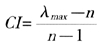 需要對(duì)判斷矩陣的質(zhì)量考察,即對(duì)矩陣進(jìn)行一致性檢驗(yàn),為了檢驗(yàn)矩陣的一致性,需要計(jì)算其一致性指標(biāo)CI,定義: