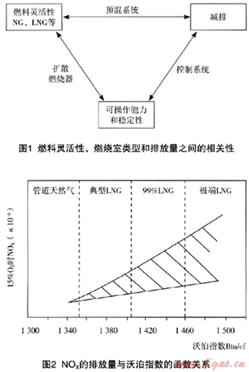 為使燃燒器適應(yīng)燃?xì)赓|(zhì)量的變化,在工業(yè)設(shè)備上也可安裝控制系統(tǒng),例如安裝在燃?xì)廨啓C(jī)上的就比常規(guī)的燃燒器系統(tǒng)要復(fù)雜。而且雖有控制系統(tǒng),排放情況仍有些變化。例如國(guó)外一些新型的干式低NOx排放(DLN)或干式低排放(DLE)燃燒室,對(duì)燃?xì)饨M分變化的允許范圍均很窄。