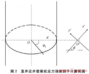假設:近井壁裂紋擴展的開始是井壁失穩(wěn)的臨界點。即如果存在井壁裂紋的擴展條件,就認為井壁會發(fā)生失穩(wěn)坍塌現(xiàn)象,并且近井壁裂紋擴展的開始,就是井壁失穩(wěn)的開始。根據(jù)此假設,就可以把定量確定裂紋擴展的判據(jù)應用于確定井壁失穩(wěn)。