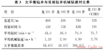 從表3可以看出,在沙一段至馬鞍山組層段,與常規(guī)鉆井技術(shù)相比,欠平衡鉆井能夠明顯提高機械鉆速,其中,與龍104井對比,最高可達206%。