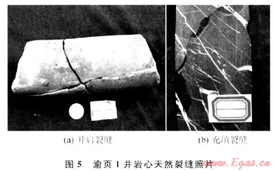 對(duì)于新完鉆的頁(yè)巖氣井,要獲得工業(yè)性氣流,必須采用水力壓裂改善儲(chǔ)層的滲透能力,在進(jìn)行壓裂作業(yè)時(shí),應(yīng)該結(jié)合完井方式,儲(chǔ)層特點(diǎn)選擇合適的壓裂工藝。根據(jù)國(guó)外頁(yè)巖氣開發(fā)的經(jīng)驗(yàn),深度較淺(低于1500m)或壓力較低的頁(yè)巖儲(chǔ)層一般使用氮?dú)馀菽瓑毫眩械壬疃?1500~3000m)的儲(chǔ)層則適宜使用清水壓裂開采。氮?dú)馀菽瓑毫褜?duì)頁(yè)巖儲(chǔ)層無(wú)傷害,成本低,收益快,是我國(guó)頁(yè)巖氣勘探開發(fā)初期淺井開發(fā)比較合適的壓裂方式,美國(guó)頁(yè)巖氣開發(fā)早期曾使用氮?dú)馀菽瓑毫眩诋?dāng)時(shí)取得了良好的效果,現(xiàn)在在某些特殊儲(chǔ)層壓裂仍然使用[23~24]。我國(guó)頁(yè)巖氣儲(chǔ)層除少數(shù)地區(qū)埋深較淺外,大多數(shù)埋深大于1500m,對(duì)于埋深小于1500m的有利儲(chǔ)層或開發(fā)前期的勘探淺井,可以嘗試使用氮?dú)馀菽瓑毫?;?duì)于埋深在1500~3000m的有利儲(chǔ)層,清水壓裂是最適宜的壓裂方式。對(duì)于開采長(zhǎng)度(厚度)大的頁(yè)巖氣井,可以結(jié)合儲(chǔ)層的特點(diǎn),嘗試使用清水壓裂與多級(jí)壓裂相結(jié)合的水力壓裂技術(shù);對(duì)于埋深在3000m以下的儲(chǔ)層,考慮到開采成本和技術(shù)的可行性,可暫時(shí)不用開發(fā)。2009年完鉆的渝頁(yè)1井是我國(guó)第一口勘探淺井,通過(guò)對(duì)渝頁(yè)1井的巖心分析,我國(guó)上揚(yáng)子地區(qū)龍馬溪組頁(yè)巖天然裂縫系統(tǒng)較發(fā)育,蒙脫石含量少,水敏性弱,不同深度含氣性各異,因此可采用清水分段壓裂(圖5)。