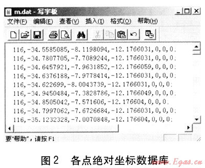獲取點云數(shù)據(jù)后,對數(shù)據(jù)模型進行重構(gòu),包括點云處理和坐標系對齊等。為進一步進行數(shù)據(jù)處理,將測量所得的各點絕對坐標分段導入數(shù)據(jù)庫,數(shù)據(jù)庫格式便于MATLAB軟件調(diào)用即可,各點絕對坐標數(shù)據(jù)庫見圖2。