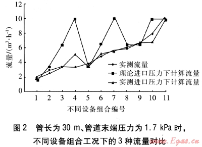 c. 實測進口壓力下計算流量:利用實際測出的P2壓力值計算出來的管道系統(tǒng)流量。