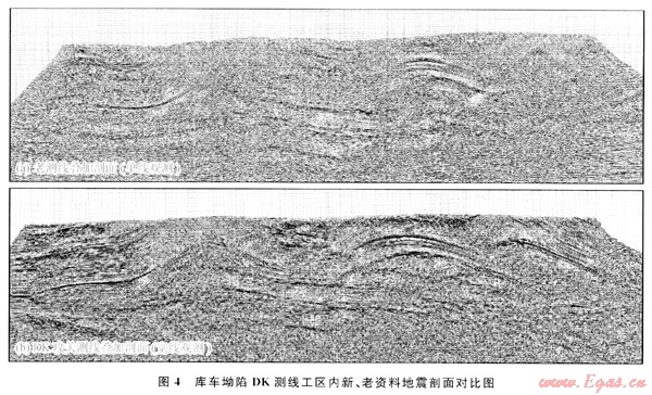 摘要:塔里木盆地庫車坳陷的地震資料受到復(fù)雜地表結(jié)構(gòu)和地腹地質(zhì)條件的影響,普遍存在著信噪比低、剖面品質(zhì)不高的問題,制約了油氣勘探開發(fā)的進(jìn)程。為此,在庫車坳陷DK二維地震攻關(guān)測線施工中,以寬線觀測系統(tǒng)、大基距組合接收(巨厚黃土堆積帶采用9串檢波器面積組合接收,老巖層出露的復(fù)雜山體區(qū)采用3串檢波器“三”字形組合接收)為核心采集技術(shù),開展詳細(xì)表層調(diào)查,利用地震工程遙感技術(shù)選擇合理的激發(fā)點(diǎn)和接收點(diǎn),同時增加目的層的覆蓋次數(shù),強(qiáng)化激發(fā)和接收條件,從而提高了單炮記錄的信噪比,改善了地震剖面的品質(zhì),為庫車坳陷構(gòu)造形態(tài)的重新認(rèn)識提供了良好的地震資料。攻關(guān)試驗(yàn)的成功表明,該套技術(shù)方法在其他類似地區(qū)也具有很好的推廣應(yīng)用價值。