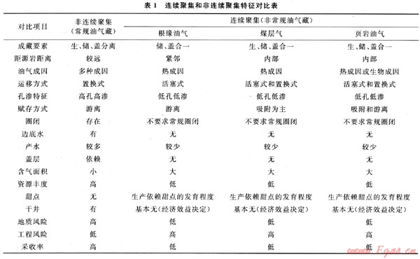 連續(xù)油氣藏一詞最早是USGS(美國地質調查局)1995年進行油氣資源評價時用來區(qū)別與常規(guī)油氣藏不同的一種新型氣藏的名稱。對這類油氣藏[括煤層氣藏、頁巖油氣藏、根緣油氣藏(深盆油氣藏)]需要采用專門的評價方法[10]。筆者認為,這類連續(xù)油氣藏不但在資源評價方法上與常規(guī)油氣藏不同,而且在地質特征上也與常規(guī)油氣藏有著本質的區(qū)別。