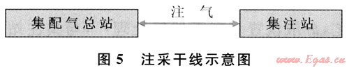 注采干線是由集配氣總站至各集注站間的輸氣干線(圖5)。注氣時(shí),氣源來(lái)氣在集配氣總站根據(jù)集注站注氣能力進(jìn)行分配和計(jì)量,通過(guò)注采干線進(jìn)入集注站;采氣時(shí),各集注站來(lái)凈化氣通過(guò)注采干線輸往集配氣總站匯集,經(jīng)外輸管線統(tǒng)一外輸。注采干線采用注采合一工藝,滿足雙向輸送。