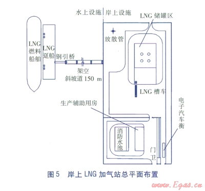 ③考慮到內(nèi)河航道為黃金水道,其岸線資源有限,LNG加氣站按滿足5000t級(jí)船舶的一個(gè)泊位考慮建站規(guī)模。