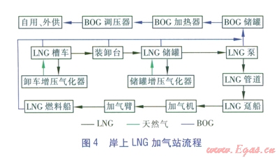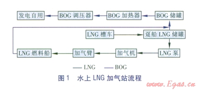 LNG儲(chǔ)存及加氣系統(tǒng)產(chǎn)生的BOG氣體經(jīng)儲(chǔ)存、加熱、調(diào)壓后,部分供岸上站內(nèi)生活自用,其余部分供應(yīng)站外用戶。