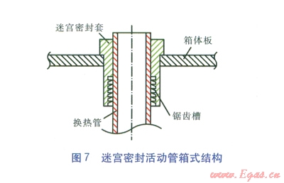采用端面填料函密封的活動管箱式結(jié)構(gòu)時,一組管箱的制造安裝費用為7.64×104元。采用迷宮密封活動管箱式結(jié)構(gòu)時,一組管箱的制造安裝費用為13.52×104元。前者的使用壽命為l0~l2個月,后者的使用壽命為6年以上。因此,在滿足使用壽命的前提下,采用迷宮密封活動管箱式結(jié)構(gòu)的空氣預(yù)熱器的技術(shù)經(jīng)濟性可以接受。