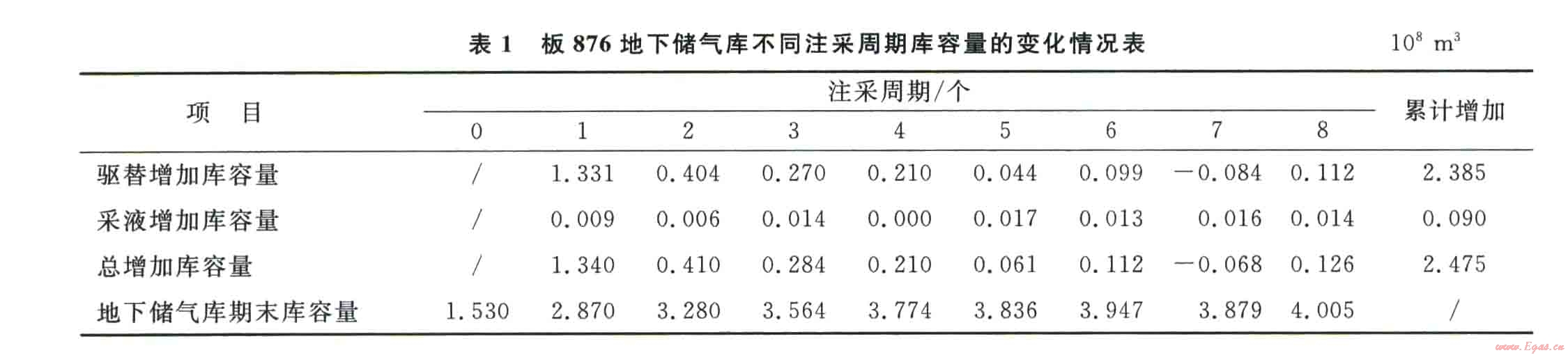 表1 板876地下儲氣庫不同注采周期庫容量的變化情況表