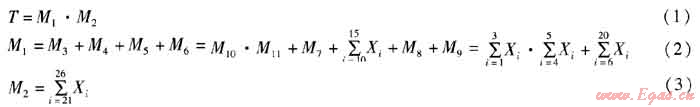 含有基本事件X1、X2、X3的最小徑集為1個(gè),該徑集P3包含的基本事件數(shù)是18個(gè),則由式(4)得基本事件X1、X2、X3的結(jié)構(gòu)重要度系數(shù)為: