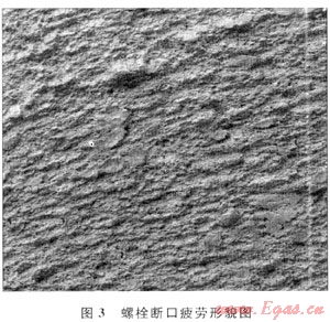 綜合以上分析推斷4#、5#、6#、7#螺栓在過高的交變應(yīng)力和腐蝕作用下產(chǎn)生了疲勞裂紋,在疲勞裂紋擴展到一定程度時,螺栓因受力過載發(fā)生全部斷裂。結(jié)論為:
