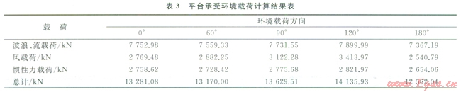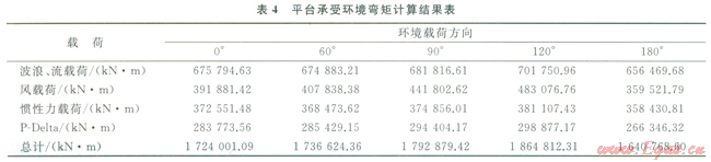 表3、4分別為平臺在該海域所受到各方向環(huán)境載荷、彎矩計算結(jié)果。
