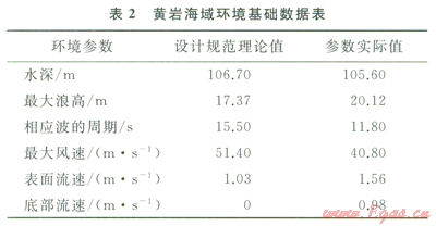 對比表2中數(shù)據(jù),得知該海域的最大浪高、表面和底部流速等環(huán)境參數(shù)數(shù)值已超過平臺操船手冊[12]規(guī)范的數(shù)值,因而在正常條件下,該型平臺不能在該海域進行生產(chǎn)作業(yè)。