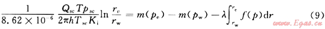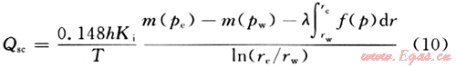 是由啟動壓力梯度引起的附加壓降,其值大小與地層中壓力分布有關。于是在法定單位之下,考慮氣體滑脫、啟動壓力梯度、應力敏感下的直井產(chǎn)量為: