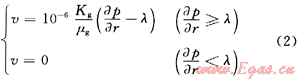 綜合考慮氣體滑脫、啟動壓力梯度、應力敏感的氣體運動方程為: