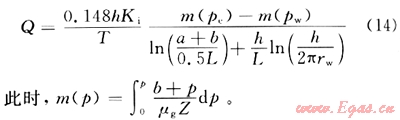 因此,根據(jù)等值滲流阻力公式,考慮氣體滑脫、啟動壓力梯度、應力敏感的水平井產(chǎn)能公式為: