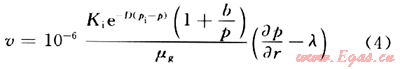 )通過實驗難以準確獲得,所以直接用地層壓力(p)代入進行推導。 考慮啟動壓力梯度的氣體運動方程為: