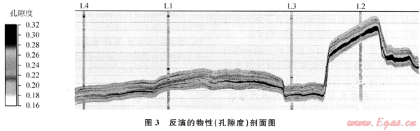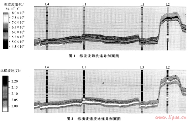 由于L氣田井?dāng)?shù)目相對(duì)較少,為了提高反演結(jié)果在空間上的可靠性,算法上選擇了將疊前AVA同步反演結(jié)果作為趨勢約束的基于序貫高斯協(xié)模擬技術(shù)的隨機(jī)反演方法。在此,地震數(shù)據(jù)和井?dāng)?shù)據(jù)一樣作為硬數(shù)據(jù)得到重視,反演結(jié)果同時(shí)符合測井、地震和輸入的數(shù)據(jù),并且受建立的地質(zhì)模型的約束。