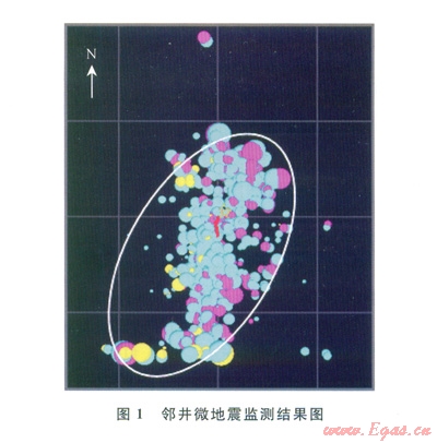 四川盆地上三疊統(tǒng)須家河組五段是川西坳陷最主要的烴源巖發(fā)育層段,地層孔隙度為3%左右,滲透率為0.01mD左右,為典型的低孔隙度、低滲透率頁(yè)巖氣藏,需進(jìn)行縫網(wǎng)壓裂才能實(shí)現(xiàn)有效增產(chǎn)。該層段脆性指數(shù)為54,水平段應(yīng)力差異系數(shù)為0.24,且發(fā)育大量天然裂縫,具備壓裂形成復(fù)雜裂縫的條件[11-12]。前期微地震監(jiān)測(cè)表明該層段壓裂形成了復(fù)雜裂縫,結(jié)果如圖l所示。