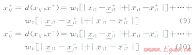 3.1.4計(jì)算待評(píng)價(jià)區(qū)塊與正負(fù)靶心之間的靶心距設(shè)正、負(fù)靶心距分別為xij+、xij-。即