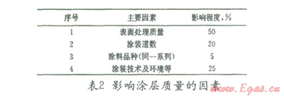 表面處理的好壞對涂層質(zhì)量影響很大,有學者研究過影響涂層質(zhì)量和壽命的各種因素,結果如表5所示[1],顯然表面處理的質(zhì)量是對涂裝質(zhì)量影響最大的因素。在海管節(jié)點的防腐施工中表面處理也非常關鍵,為了保證防腐效果必須對鋼表面進行噴砂處理,達NSa2.5級以上。