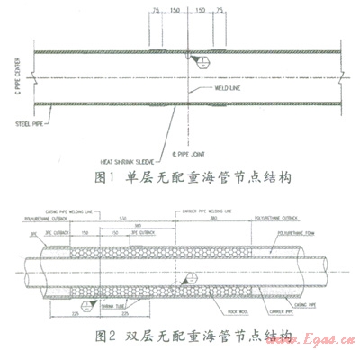 不同結構的海管也有多種不同結構的節(jié)點,無配重海管的普通節(jié)點結構如圖l、2所示。此外常見的海管還有單層配重管、單層保溫管、雙層配重管等多種結構。