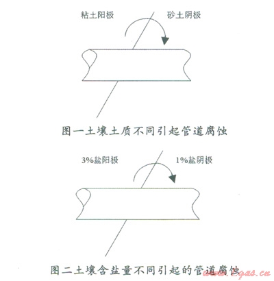 土壤腐蝕是油氣長輸管線的管外腐蝕的主要來源。土壤對管線的外部腐蝕,既有化學(xué)腐蝕,又有電化學(xué)腐蝕?;瘜W(xué)腐蝕主要是與土壤中所含的有機質(zhì),各種鹽類對金屬的腐蝕性有關(guān)。電化學(xué)腐蝕是因為土壤是一種導(dǎo)電介質(zhì),因而含水的土壤具有電解溶液的特性,從而在不均勻的土壤中構(gòu)成原生電池,而產(chǎn)生電化學(xué)腐蝕。