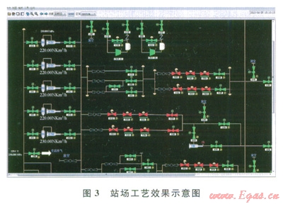 該系統(tǒng)在某油氣管道調(diào)控巾心投入使用,實(shí)現(xiàn)了人機(jī)交互畫面、系統(tǒng)組態(tài)、操作控制等功能。人機(jī)界面顯示的效果如圖3所示。