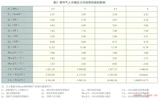 摘 要:分析了原料氣進冷箱壓力對制冷劑組份、流量、壓縮機功耗、冷卻水的冷卻量的影響。計算結果表明,對于特定的冷箱,原料氣進冷箱的壓力對制冷劑的組分、流量及壓縮機功耗產(chǎn)生重要影響。