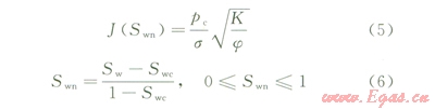 J函數(shù)法是以壓汞數(shù)據(jù)為基礎(chǔ),針對(duì)巖石孔喉特征進(jìn)行研究的方法。因?yàn)閷?shí)驗(yàn)室測(cè)定的小尺寸巖樣的毛細(xì)管壓力曲線(xiàn)只能代表氣層中的一個(gè)點(diǎn),而要得到能夠表征整個(gè)氣層的毛細(xì)管壓力曲線(xiàn),就必須將獲得的所有毛細(xì)管壓力資料綜合平均。為此,Leverett提出了“J”函數(shù)的概念和汁算公式: