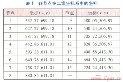 xi、yi——節(jié)點(diǎn)i在二維坐標(biāo)系(xOy)中的坐標(biāo)