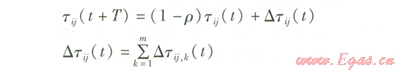 式中tij(t+T)——t+T時刻在節(jié)點(diǎn)i與j路徑上的殘留信息量
