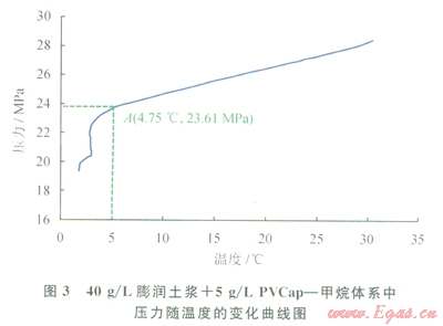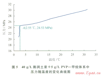PVP作為第一代天然氣水合物動力學(xué)抑制劑的代表,近年來應(yīng)用較多。圖5、6反映了加入PVP后膨潤土漿中水合物的生成過程。