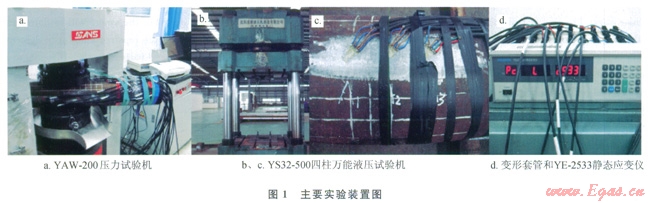 整形實驗設(shè)備包括YAW-200壓力試驗機(jī)、YE-2533靜態(tài)應(yīng)變儀、YS32-500型的四方柱萬能液壓試驗機(jī)、上下夾具、帶傳感器的配合接頭。其中壓力試驗機(jī)用于制備橢圓形套管;靜態(tài)應(yīng)變儀用于測餐梨形脹管器整形過程中配合接頭上產(chǎn)生的壓應(yīng)變;上下夾具分別用于固定脹管器和變形套管;四方柱萬能液壓試驗機(jī)用于施加整形力。故根據(jù)配合接頭上的壓應(yīng)變,并結(jié)合胡克定律和配合接頭的幾何尺寸可以求得梨形脹管器整形時所需的整形力Fp即