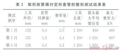 關(guān)鍵詞:梨形脹管器 套管 變形 整形 修復(fù) 整形力 回彈量 磨損量