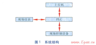 該系統(tǒng)中現(xiàn)場(chǎng)儀表及控制設(shè)備通過(guò)PLC通信將實(shí)時(shí)情況反饋給上位機(jī),并在上位機(jī)顯示相關(guān)數(shù)據(jù)。上位機(jī)通過(guò)PLC通信將指令發(fā)送到現(xiàn)場(chǎng)控制設(shè)備,對(duì)其進(jìn)行自動(dòng)控制。