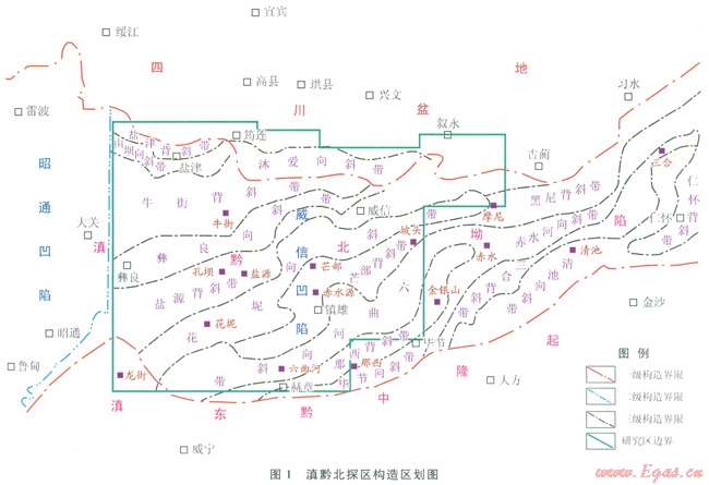 滇黔北探區(qū)地處三省交會的云南昭通、貴州畢節(jié)、四川宜賓和瀘州區(qū)域,大地構(gòu)造上屬于揚子地塊構(gòu)造域西南邊緣的滇黔北坳陷,主體為威信凹陷的中兩部區(qū)域(圖1),其北側(cè)為四川盆地(海相古生界構(gòu)造臺坳)。