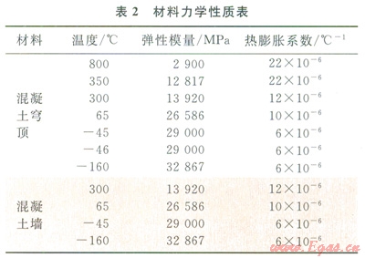 在外界溫度變化下,儲罐內的LNG達到沸點蒸騰,從而產生氣壓。為保護混凝土外罐免受不斷增加的氣壓作用,需通過穹頂上部的安全閥將超壓的LNG蒸氣排出。在此過程中,LNG蒸氣或被點燃發(fā)生火災。在這種偶然工況下,國內現有的混凝土規(guī)范尚無規(guī)定,而國外的ENl473等規(guī)范僅給出一般性的條款,沒有具體的計算公式。所以發(fā)生安全閥火災時,儲罐各部位的溫度怎么分布?火災導致的混凝土熱應變是否達到了極限應變等,這些需借助大型有限元軟件進行詳細的熱力學分析才能得到,指導后續(xù)設計工作。