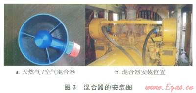 天然氣經(jīng)過安裝在柴油機(jī)空氣過濾器和渦輪增壓器之間的混合器進(jìn)入氣缸參與燃燒,經(jīng)改造后的混合燃料發(fā)動(dòng)機(jī)能維持柴油機(jī)相同的性能?;旌先剂习l(fā)動(dòng)機(jī)可以在100%柴油模式和混合燃料模式之間自由切換,并且維持轉(zhuǎn)速和負(fù)荷不變。